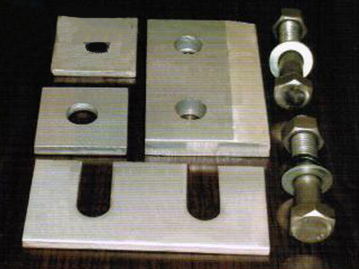 GDGL壓板的材質為:Q235B。每套GDGL壓板包括:雙孔壓板1塊,墊板1塊,楔形墊板2塊,螺栓2套。DGL壓板的材質為:球墨鑄鐵和鑄鋼。和其配套的產品為:壓板,上壓舌,異形墊板,復合橡膠墊板,六角螺栓。