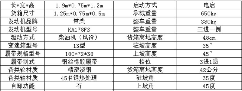 750型履帶運輸車產品性能