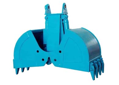 挖掘機貝型斗(也叫抓斗,哈殼斗)分為液壓回轉和不帶液壓回轉兩種。不帶液壓回轉的貝型斗采用挖掘機鏟斗油缸的油路,不用另外添加液壓閥塊及管路;帶液壓回轉的貝型斗要添加一套液壓閥塊及管路來控制。油缸配置活塞保護裝置。