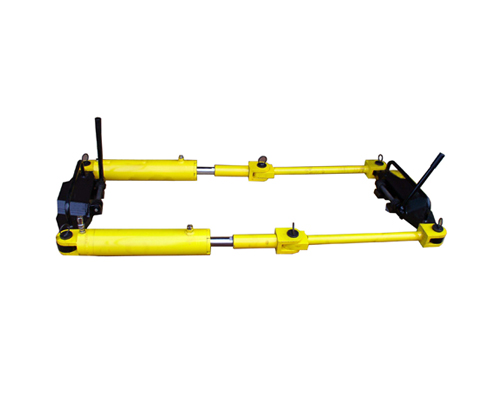 YLS-900型液壓鋼軌拉伸機主要由2個斜鐵座、2根加長桿、2個雙作用油缸、6個銷軸、1套附加配件(中心距610mm用)、1個電動泵站及高壓油管等部分組成。