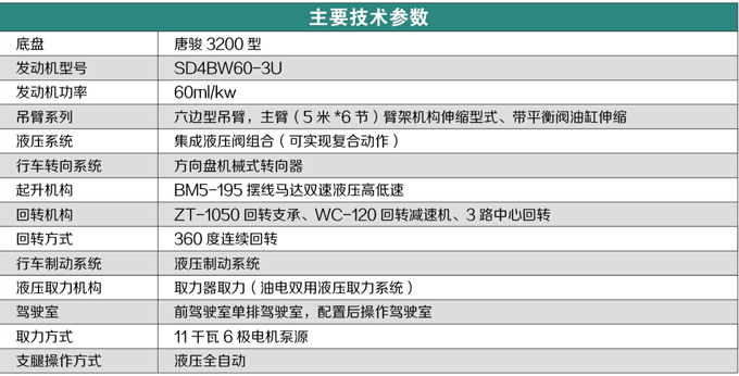 沃爾華GNQY-3200型微型吊車自制吊車專用底盤,濰柴4102大功率發動機動力強勁,行車帶液壓助力式方向機、斷氣剎制動系統、帶有中心回轉器可實現360度無限度連續旋轉,50錳鍛打燧火軌道加工回轉支承,轉向采用可靠耐用的吊車專用行星減速機,沃爾華五邊型吊臂專利技術,全液壓伸縮式支腿,大跨度幅式H字型支腿大架,起升雙速度設計,主卷揚采用8噸液壓絞車(軸向柱塞馬達)、副鉤采用沃爾華專利高低速常閉式卷揚機(支持快速放繩),液壓系統采用伺服控制(可實現多項復合操作),流線型駕駛室,國際行業低價位。可安裝電機泵站,直接以380V電源作動力,節約環保。產品輕便靈活,價位低廉,適用于農村及城鄉結合部工作。低價位投資,高檔產品回報。為了降低客戶的風險,公司還隨車給每臺產品在中國人壽財產股份有限公司入了一年的與產品同價值質量責任保險,客戶可更放心使用。