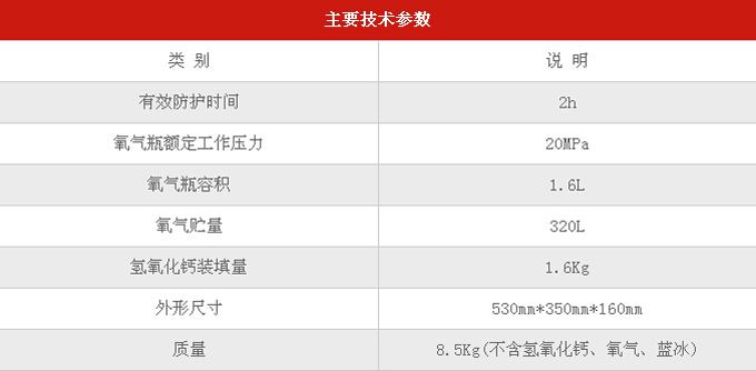 主要適用于煤礦、消防、化工、隧道、科研、和高層建筑等在有毒、有害氣體、缺氧的災害環境搶險救災、搜索探查工作中佩戴試用。
